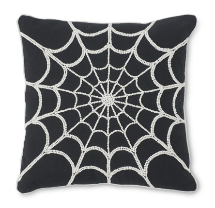 Black Pillow w/White Beaded Spider Web